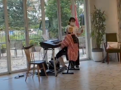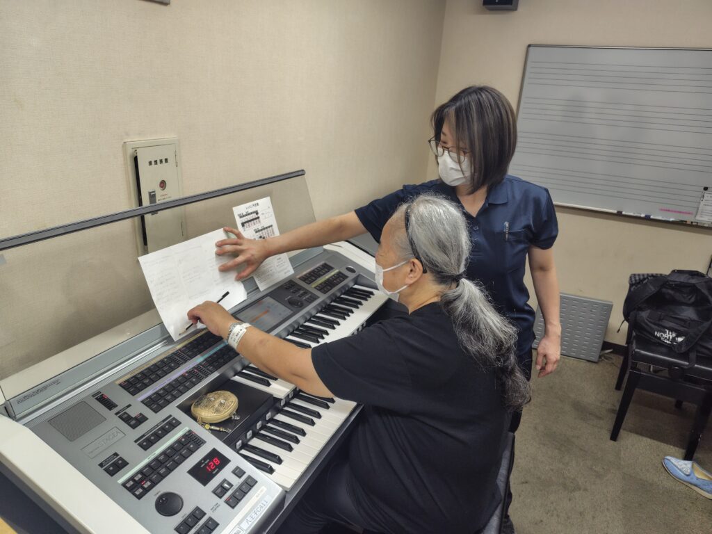 脳卒中の後遺症により片麻痺が残る中でも「もう一度エレクトーンを楽しみたい」という強い想いを胸に、「かなえるサポート」サービスを活用して練習を継続。入院中にも関わらず、スタッフの同行支援により以前通っていた音楽教室へ通い、演奏の工夫を重ねてきました。