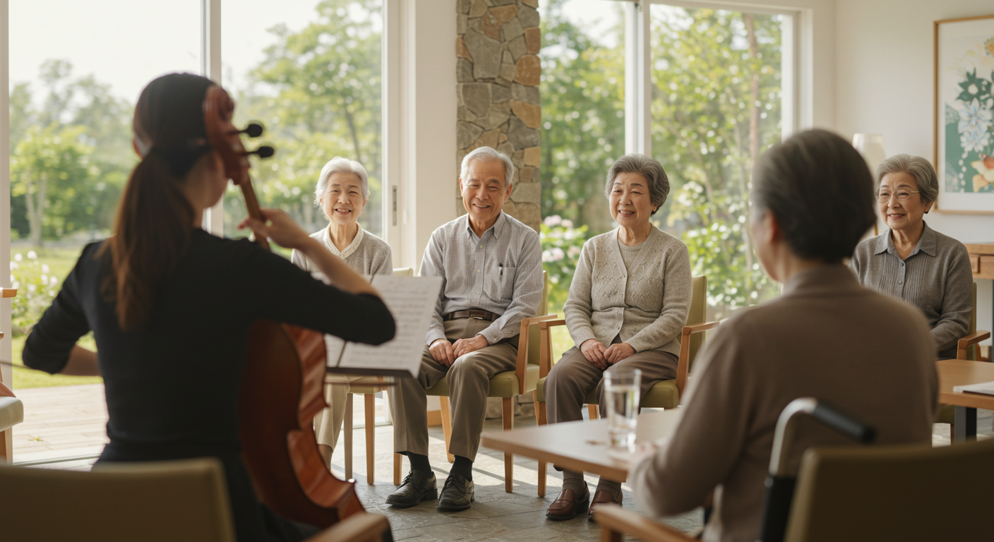 音楽鑑賞会では、参加者の皆さまが穏やかな時間を過ごされ、心身のリフレッシュにつながった様子がうかがえました。音楽を聴くことは、特別な道具や広い場所を必要とせず、誰でも日常に取り入れられる健康法です。